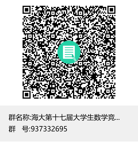非数学专业QQ群号:937332695,QQ群名:海大第十七届大学生数学竞赛(非数专业)群,QQ群二维码: