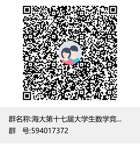 数学专业QQ群号:594017372,QQ群名:海大第十七届大学生数学竞赛(数学专业)群,QQ群二维码: